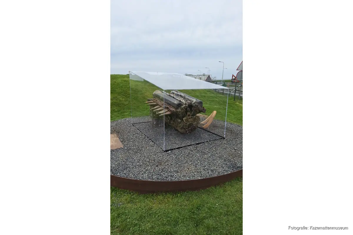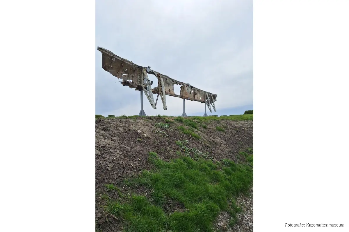 KORNWERDERZAND - Op 13 april is het restant van een vleugel van de Lancaster ED 603 bommenwerper geplaatst op een nieuwe fundering in het Kazemattenmuseum, naast de Lorentz schutsluizen. Diezelfde dag is ook één van de geborgen Rolls Royce motoren van hetzelfde vliegtuig geplaatst bij het Monumentenplein.
